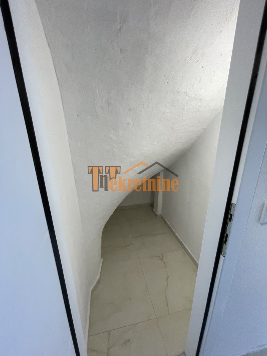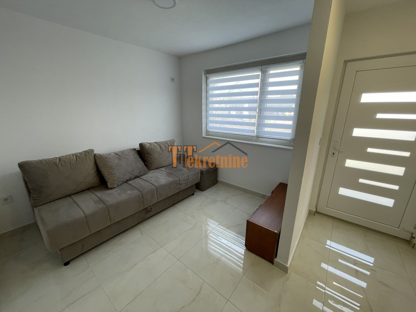 Iznajmljuje se na duži vremenski period (minimalno 12 mjeseci) dvosoban stan ukupne površine 38 m2, uz dodatnih 8 m2 balkona, na I spratu stambenog objekta.