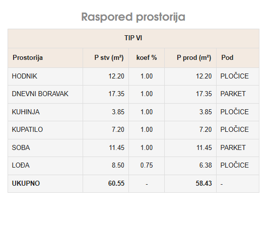 Prodaje se dvosoban stan u izgradnji ukupne površine 58,43 m2 na VI spratu stambeno poslovnog objekta “SAND CITY” koji će da posjeduje lift.