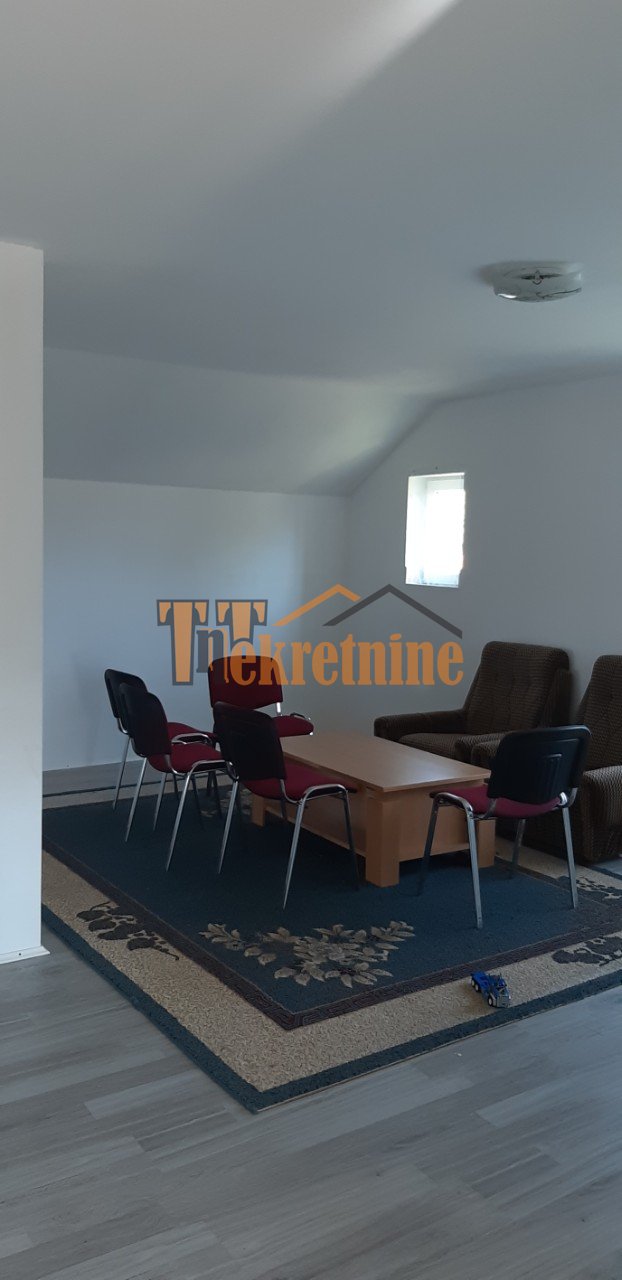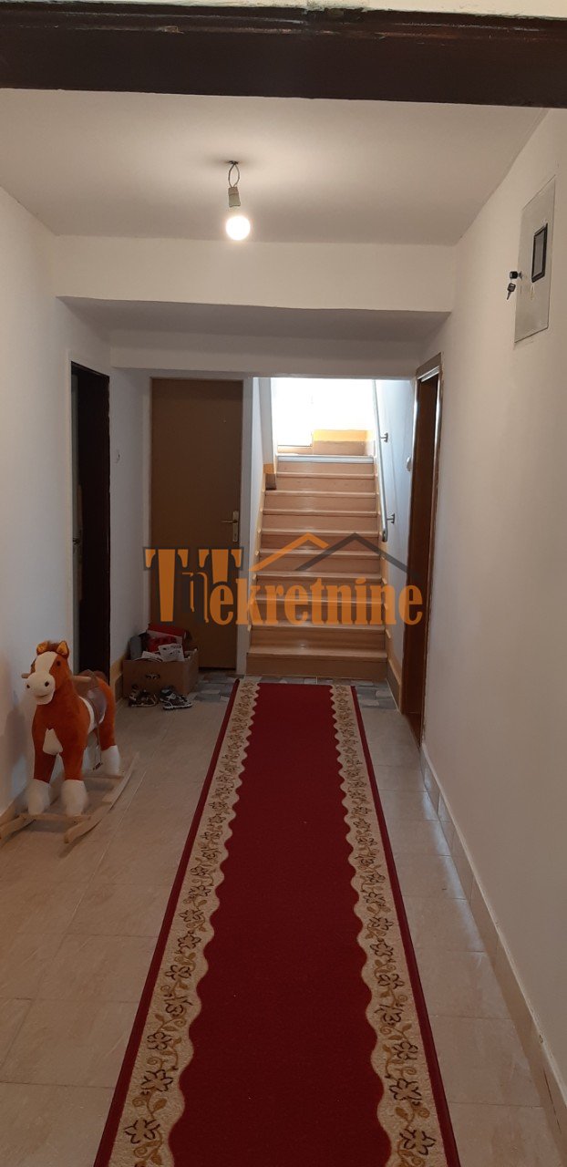 kuhinja sa trpezarijom. Unutrašnje stepenice vode na prvi sprat na kojem se nalaze tri spavaće sobe i veliki degažman.