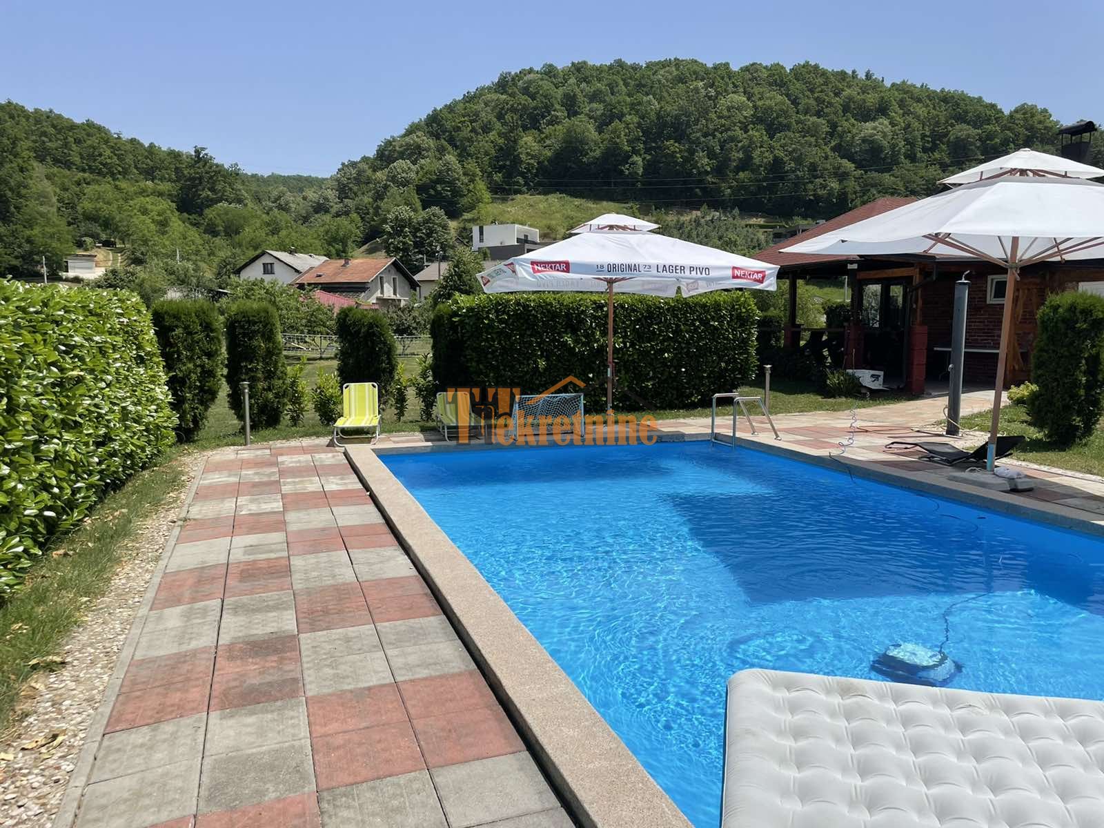 Otvoreni bazen je dimenzija 10 x 5 x 1,5m, opremljen je automatskim sistemom za čišćenje, takođe je ugrađeno i osvjetljenje za noćni ugođaj.
