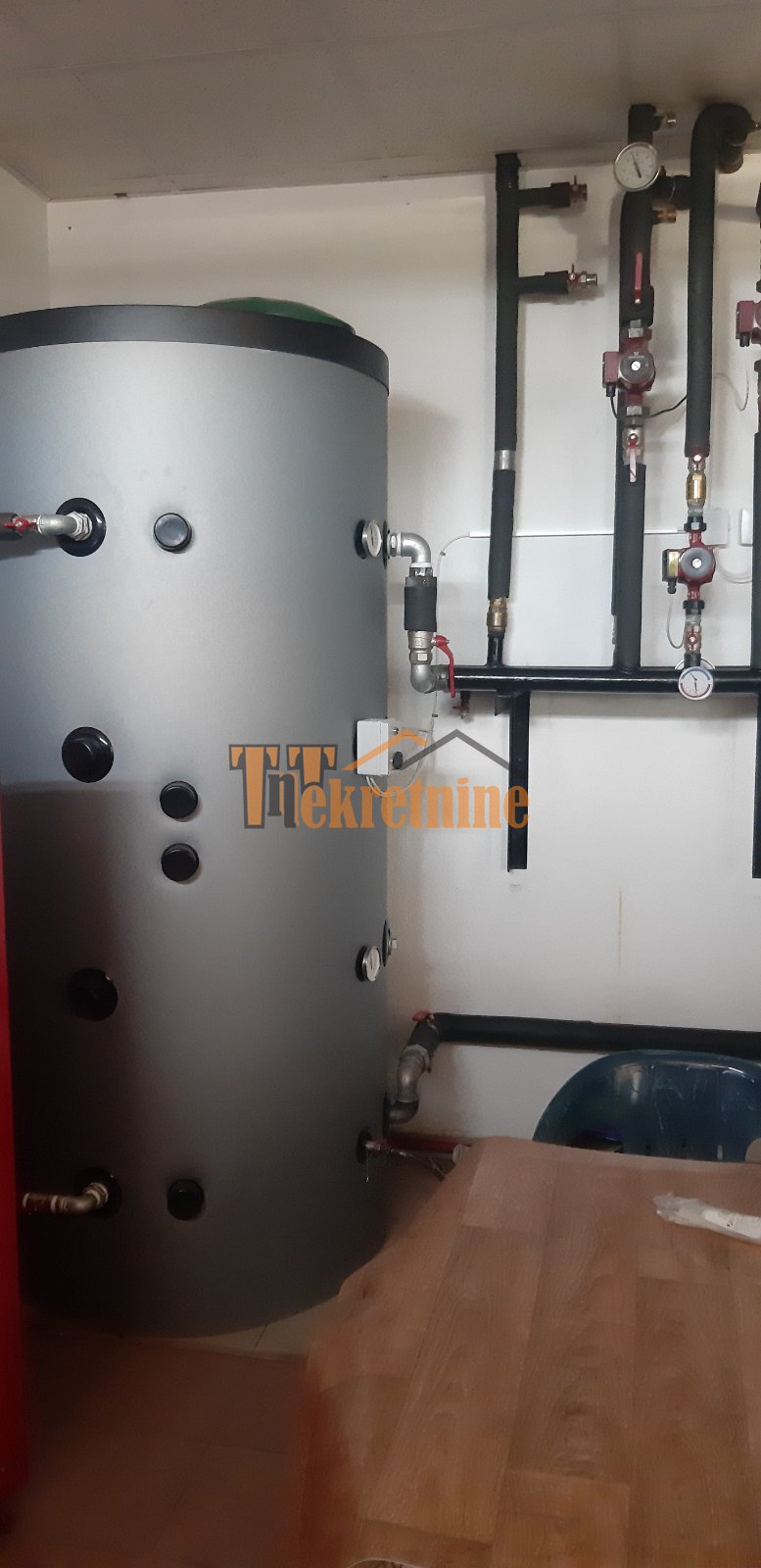 Na II etaži se nalaze dve spavaće sobe, kupatilo i ostava. Centralralno grijanje je sopstvena kotlovnica na pelet. Takođe posjeduje i solarne kolektore koje napajaju veliki centralni bojler koji je sproveden kroz cijeli objekat, tako da je potrošnja električne energije minimalna. Svaka etaža stambeno – poslovnog objekta posjeduje odvojena brojila za struju i vodu.