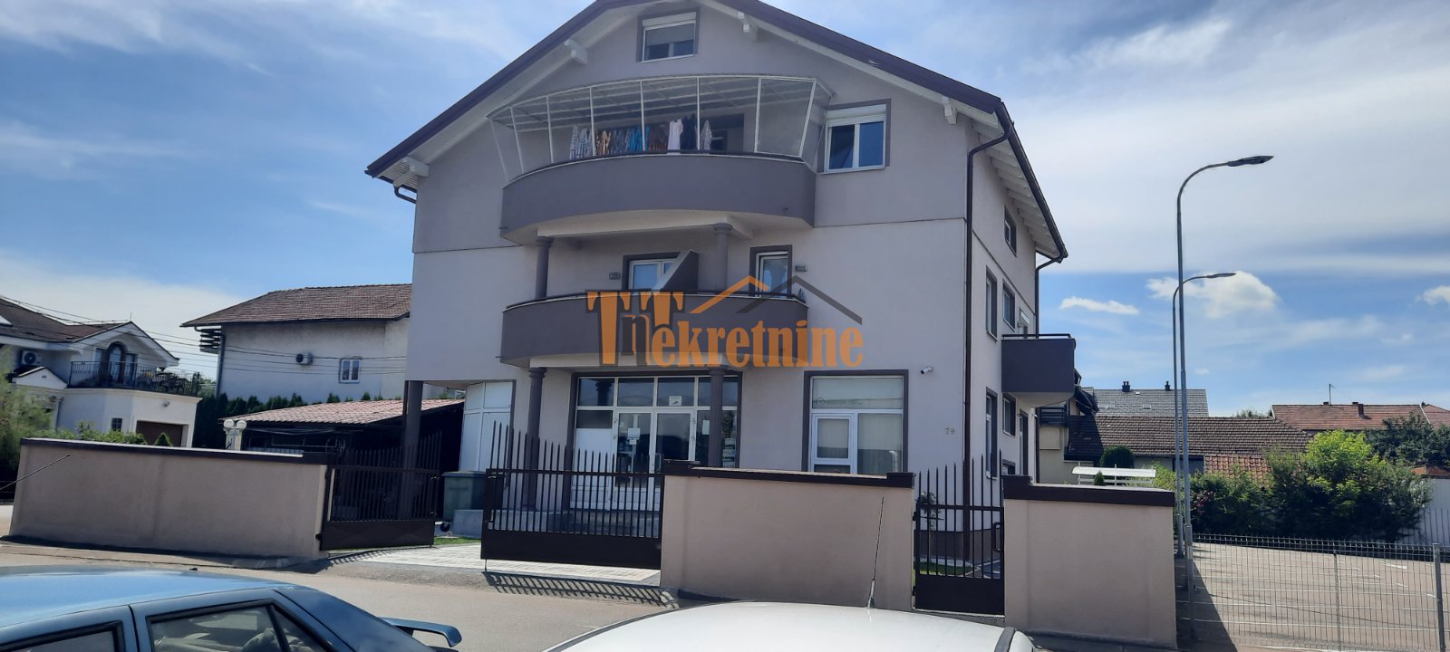 Banja Luka, Petrićevac, Ulica Miloša Crnjanskog. Prodaje se stambeno – poslovni objekat ukupne površine 500 m2, dimenzija 13 x 11 m, spratnosti P+2+M na placu od 410 m2 ograđenog dvorišta sa više parking mjesta.