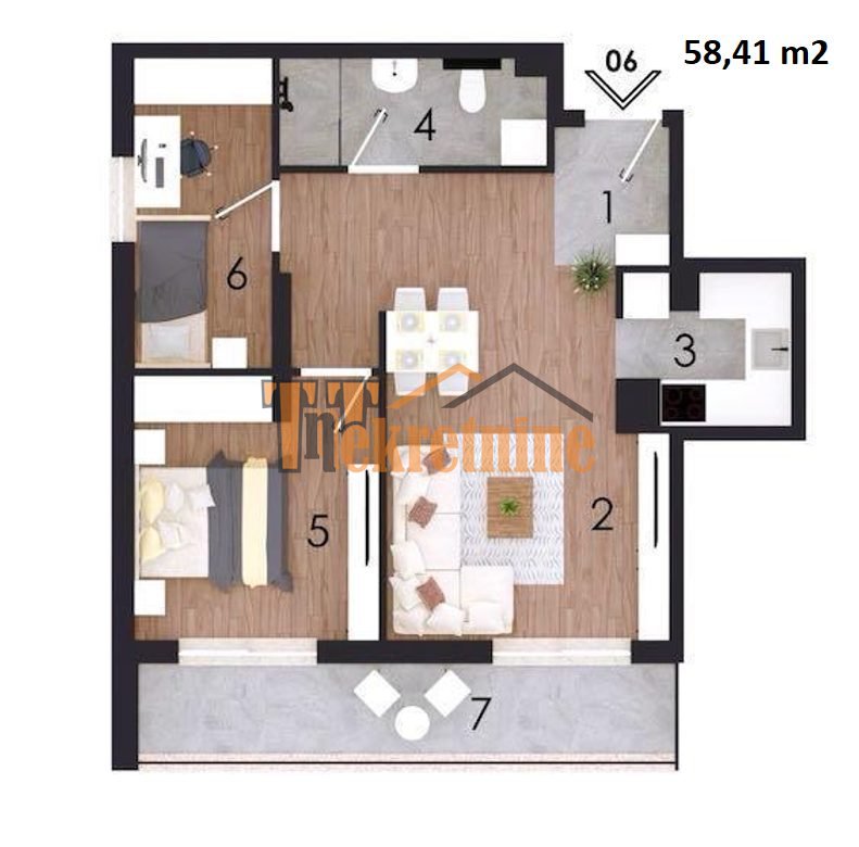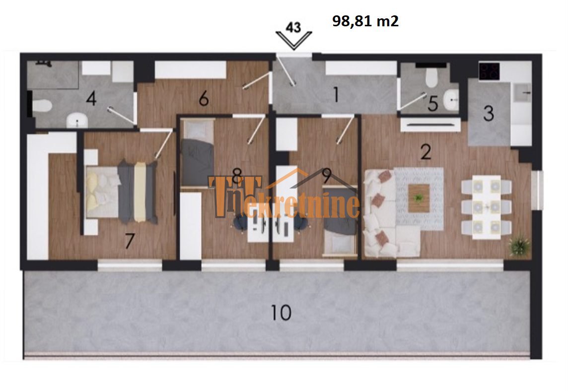 U ponudi su stambene jedinice od 45 m2 do 115 m2 (po strukturi: dvosobni, trosobni, četvorosobni i petosobni stanovi).