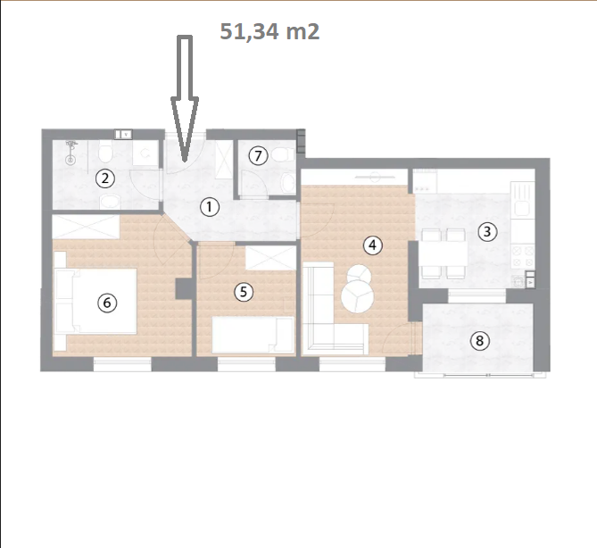 Trosoban stan 51,34 m2 – Borik