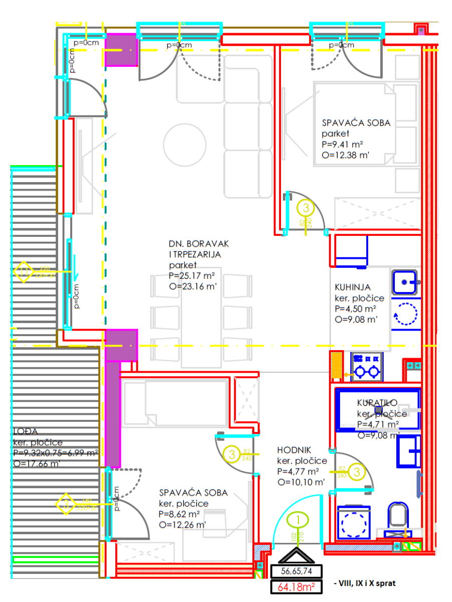 LAMELA 5 – prodaje se trosoban stan u izgradnji ukupne površine 64,18 m2 na VIII, IX i X spratu stambeno poslovnog komplexa “Palata”, zgrada će da posjeduje lift.