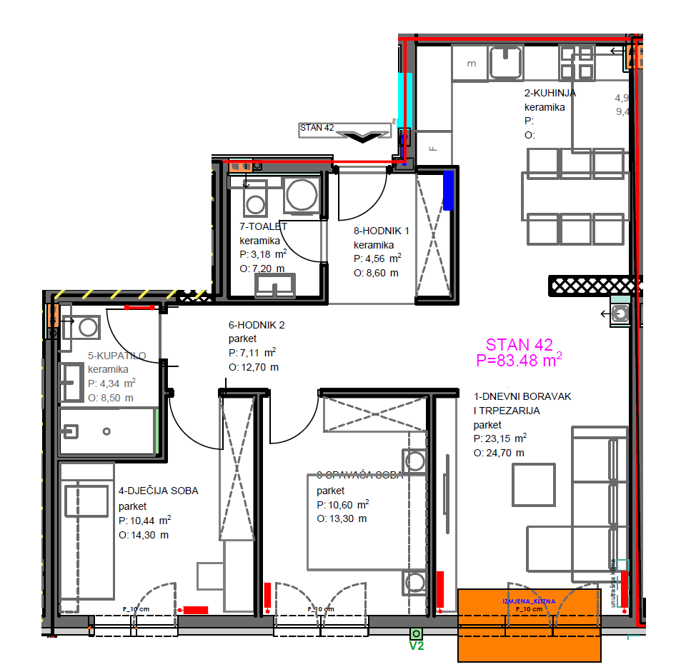 Trosoban stan 83,48 m2 – Centar (Palata)