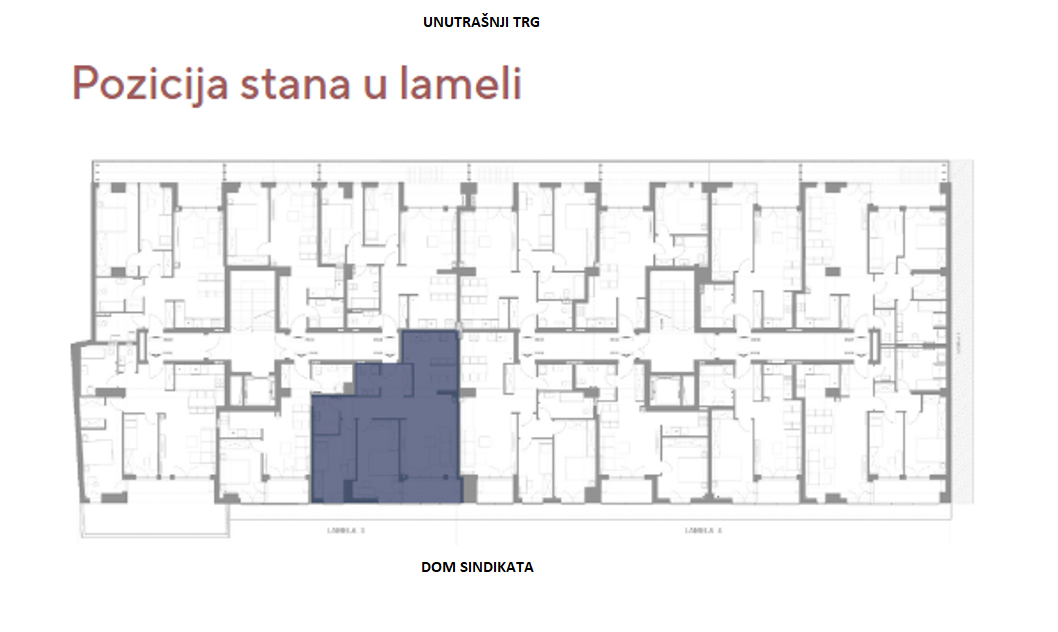 LAMELA 3 – prodaje se trosoban stan u izgradnji ukupne površine 83,48 m2 na VII spratu stambeno poslovnog komplexa “Palata”, zgrada će da posjeduje lift.