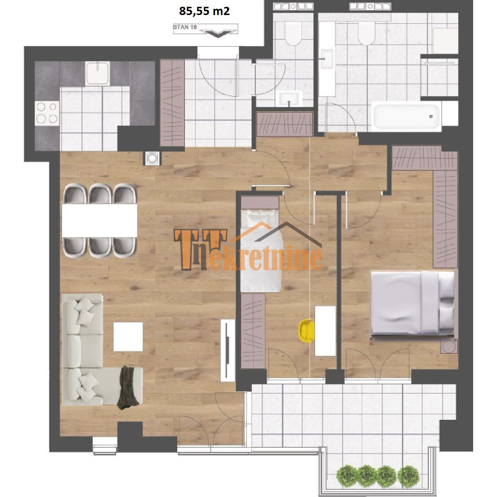 Trosoban stan 85,55 m2 – Centar (Palata)