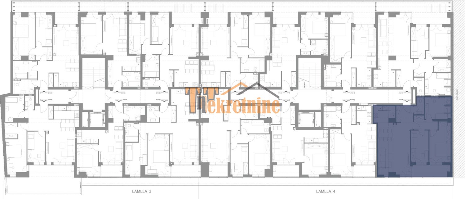 LAMELA 4 – prodaje se trosoban stan u izgradnji ukupne površine 85,55 m2 na II, III, IV, V i VI spratu stambeno poslovnog komplexa “Palata”, zgrada će da posjeduje lift.
