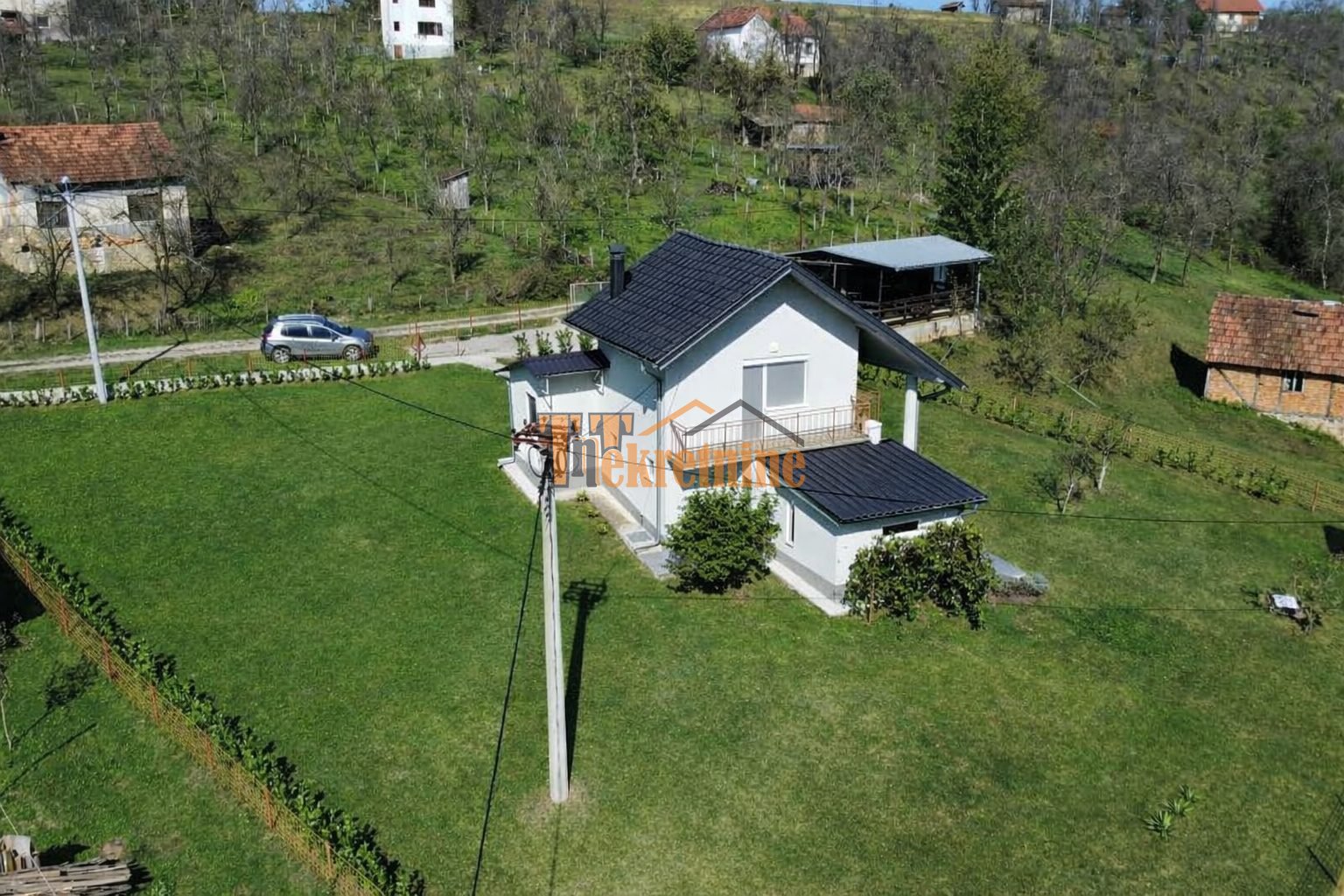 Pristup nekretnini je asfaltni, osim završnih cca 50 m koji je makadamski prilaz. Kuća je udaljena oko 3 km od glavne ceste i oko 14 km od centra grada, a smještena je u mirnom dijelu naselja što pruža privatnost i boravak u prirodnom okruženju.