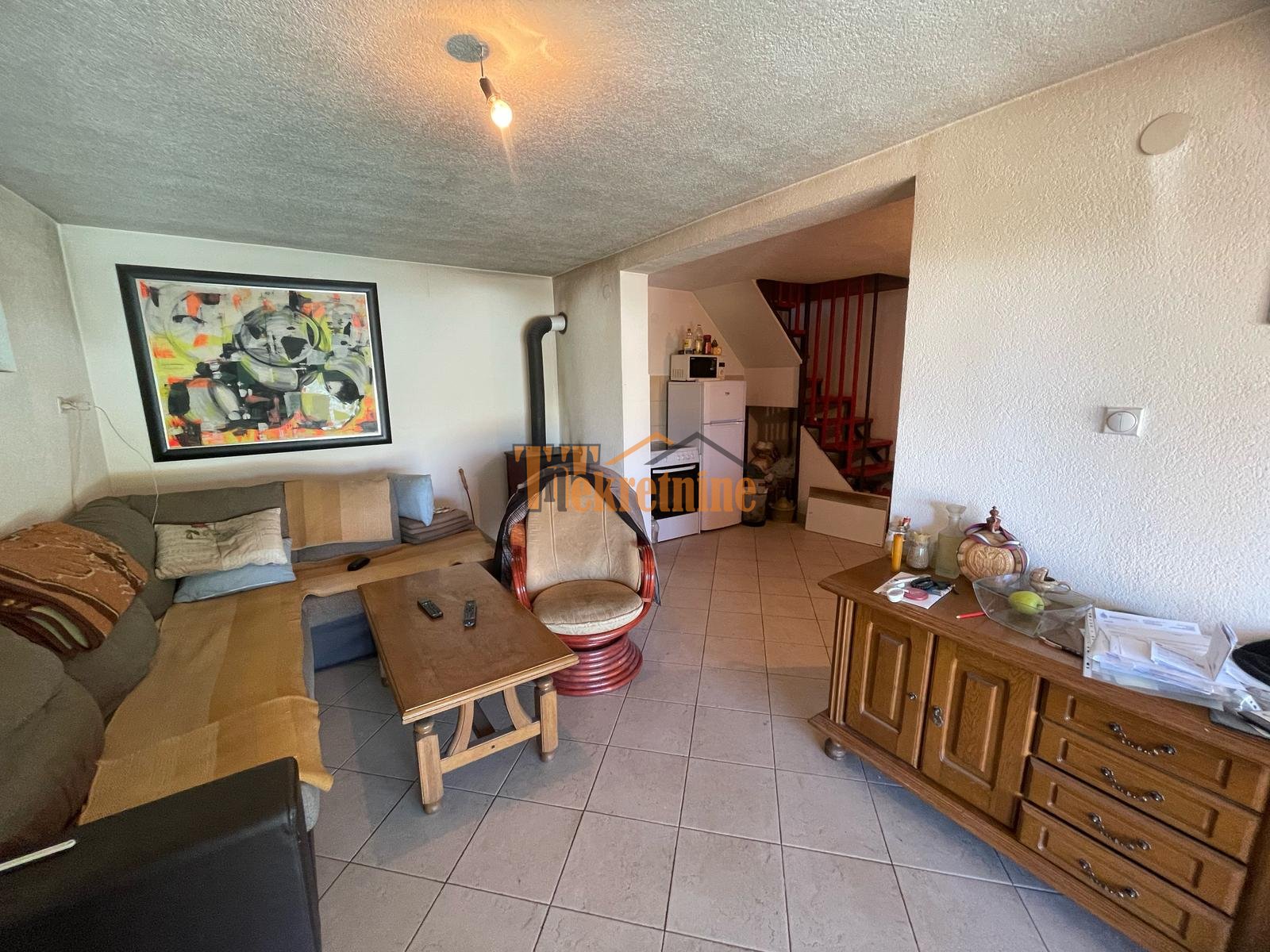 U prizemlju se nalazi dnevni boravak, kuhinja sa trpezarijom i kupatilo, dok mansardu čini jedna velika spavaća soba sa izlazom na balkon.